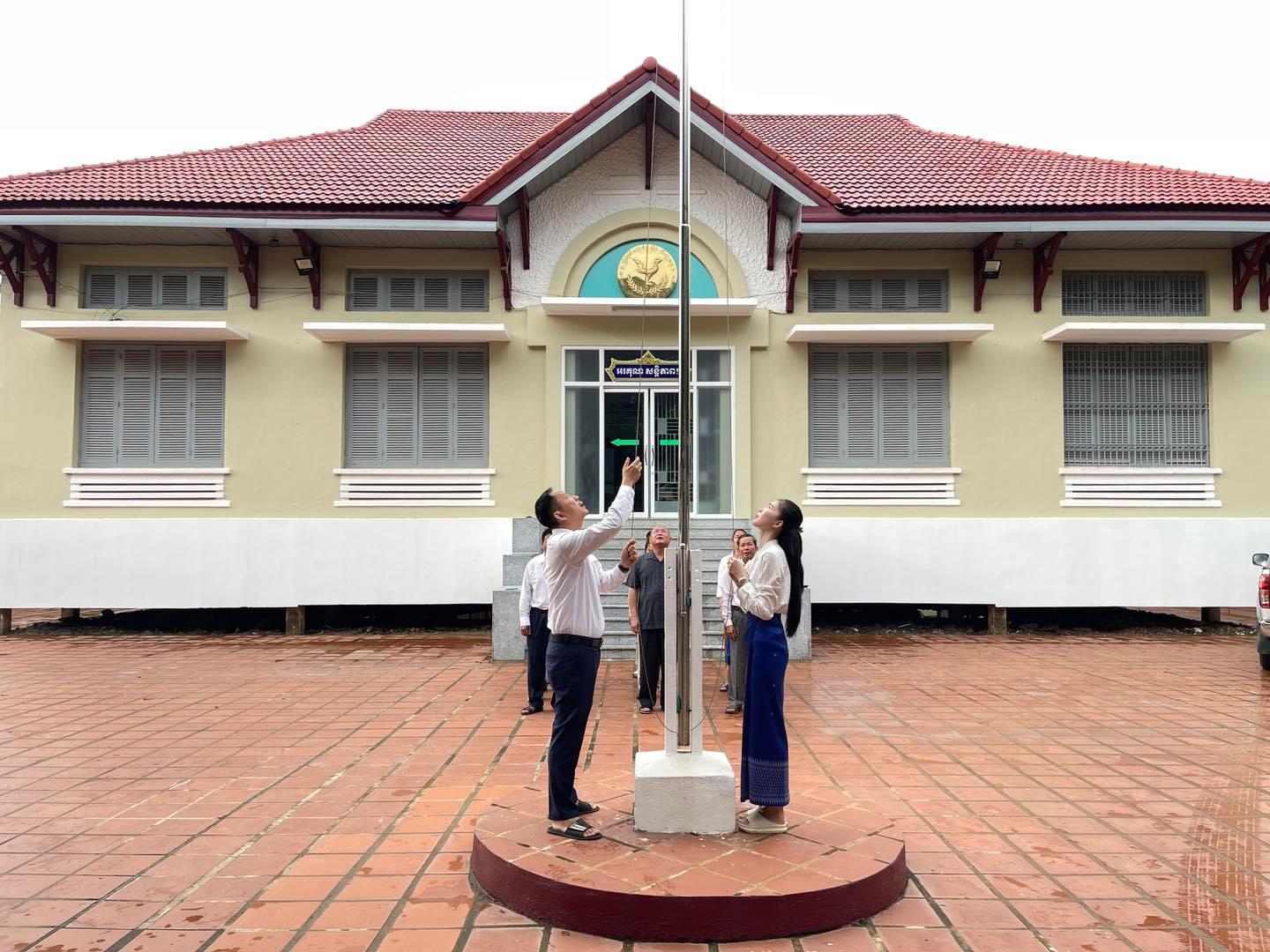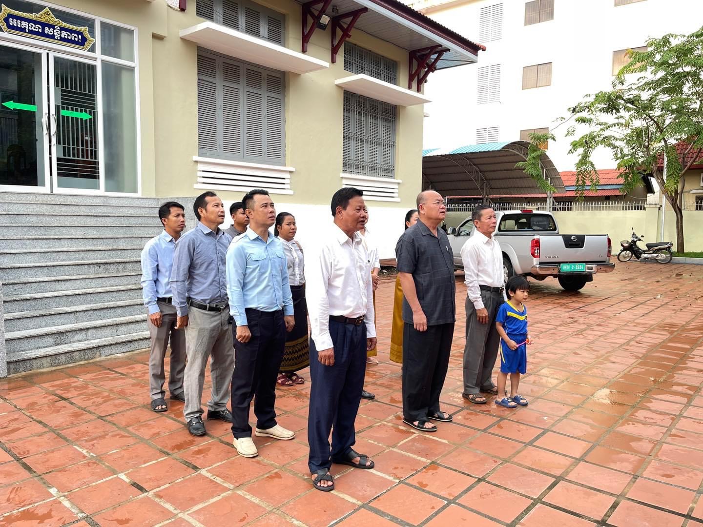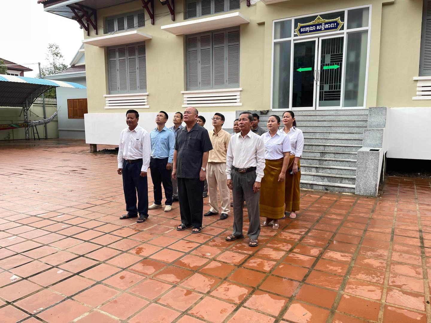 ថ្នាក់ដឹកនាំរួមទាំងមន្រ្តីរាជការនៃមន្ទីរសេដ្ឋកិច្ច និងហិរញ្ញវត្ថុបានគោរពទង់ជាតិនៃព្រះរាជាណាចក្រកម្ពុជា។