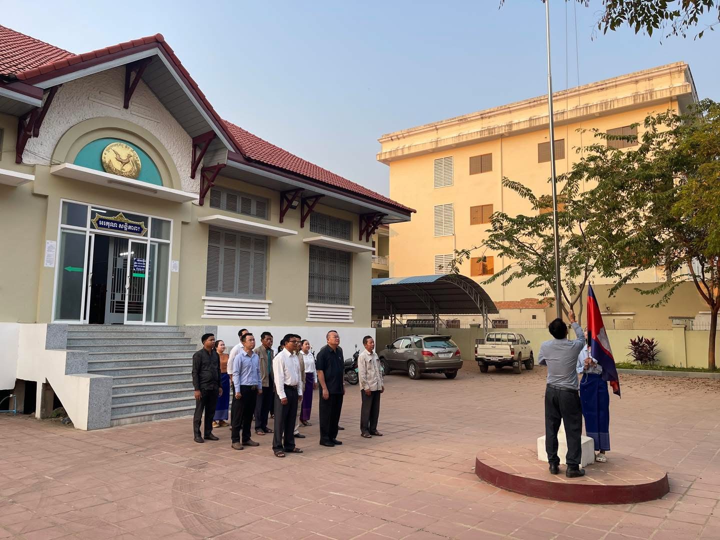 ព្រឹកថ្ងៃទី០៣ ខែកុម្ភៈ ឆ្នាំ២០២៥ វេលាម៉ោង ៧ព្រឹក ថ្នាក់ដឹកនាំ និង មន្រ្តីរាជការនៃមន្ទីរសេដ្ឋកិច្ច និងហិរញ្ញវត្ថុខេត្ត បានអនុវត្តគោរពទង់ជាតិនៃព្រះរាជាណាចក្រកម្ពុជា។