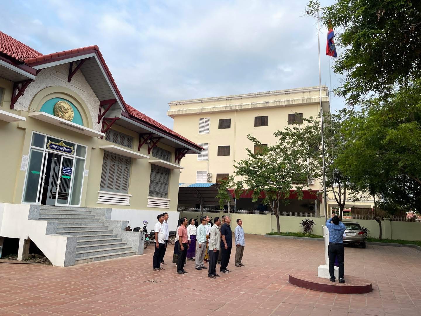 សកម្មភាពគោរពទង់ជាតិរបស់មន្ត្រីរាជការមន្ទីរសេដ្ឋកិច្ច និងហិរញ្ញវត្ថុខេត្ត នាថ្ងៃទី២១ ខែមេសា ឆ្នាំ២០២៥។