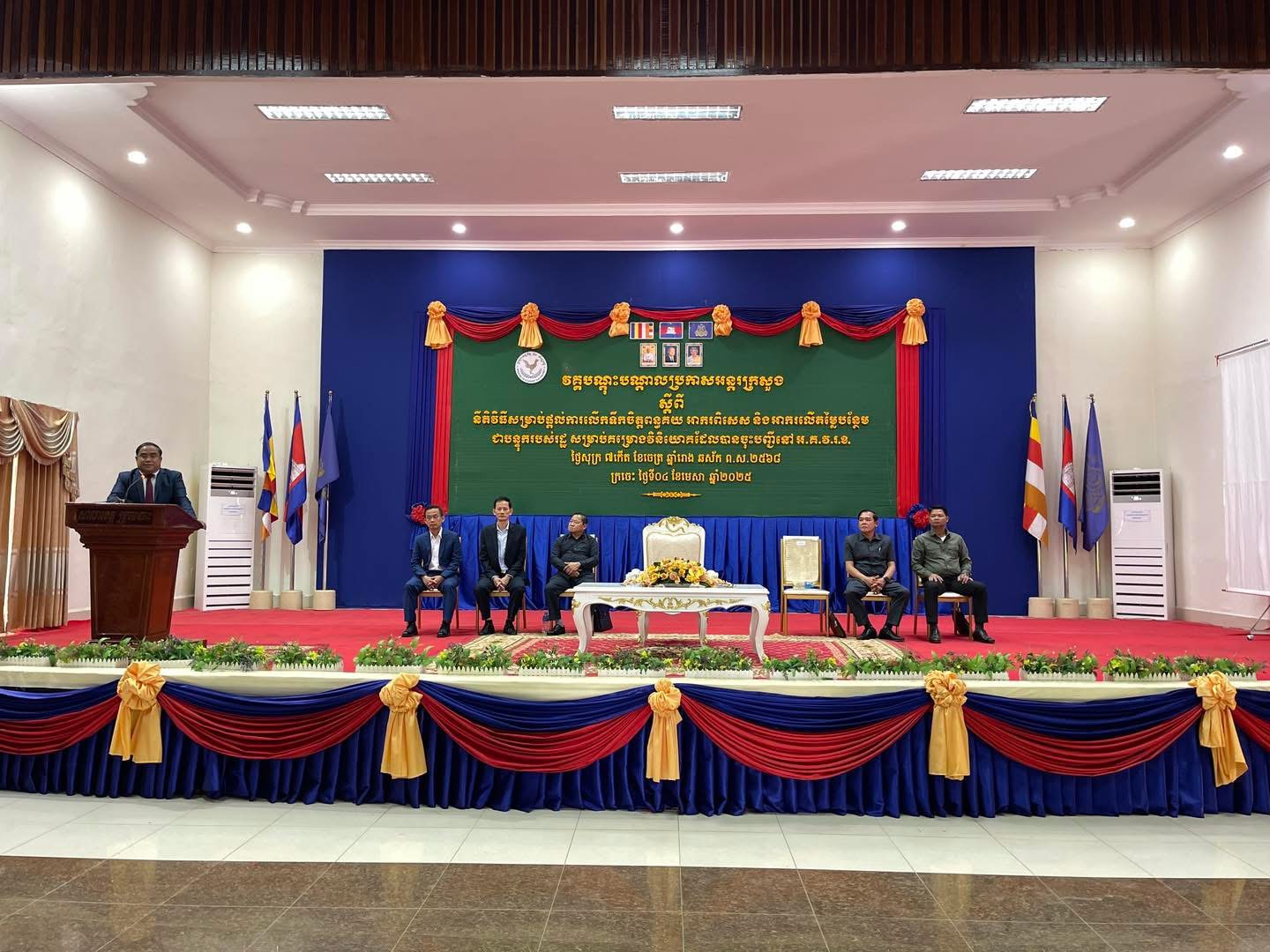 ថ្ងៃពុធ ១២កើត ខែចេត្រ ឆ្នាំរោង ឆស័ក ព.ស. ២៥៦៨ ត្រូវនឹងថ្ងៃទី៩ ខែមេសា ឆ្នាំ២០២៥ លោកប្រធានមន្ទីរសេដ្ឋកិច្ច និងហិរញ្ញវត្ថុខេត្តបានចូលរួមពិធីប្រកាសជាផ្លូវការ ដាក់ឱ្យអនុវត្តនូវ កម្មវិធីពិសេសជំរុញការវិនិយោគក្នុងខេត្តទាំងបួននៅភូមិភាគឦសាន នៃព្រះរាជាណាចក្រកម្ពុជា ឆ្នាំ២០២៥-២០២៨» ក្រោមអធិបតីភាពដ៏ខ្ពង់ខ្ពស់របស់ សម្តេចមហាបវរធិបតី ហ៊ុន ម៉ាណែត នាយករដ្ឋមន្ត្រី នៃព្រះរាជាណាចក្រកម្ពុជា ដែលប្រព្រឹត្តិទៅនៅសណ្ឋាគារសុខាភ្នំពេញ។
