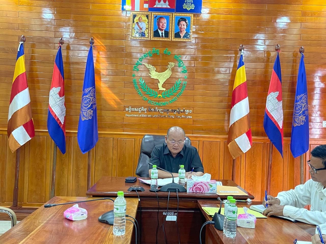 នាព្រឹកថ្ងៃពុធ ៨រោច ខែភទ្របទ ឆ្នាំរោង ឆស័ក ព.ស.២៥៦៨ ត្រូវនឹងថ្ងៃទី២៥ ខែកញ្ញា ឆ្នាំ២០២៤ ប្រតិភូនៃក្រសួងសេដ្ឋកិច្ច និងហិរញ្ញវត្ថុបានជួបពិភាក្សាជាមួយសហគមន៍ទេសចរណ៍ ក្នុងដំណើរទស្សនកិច្ចសិក្សា ដើម្បីស្វែងយល់ពីសក្តានុពលនៃខេត្តទាំងបួន ក្នុងតំបន់ភូមិភាគឦសាន ប្រទេសកម្ពុជា កិច្ចប្រជុំនេះដឹកនាំដោយ ឯកឧត្តម ស៊ឹម វីរៈ អនុរដ្ឋលេខាធិការ និងជាអគ្គលេខាធិការរងនៃអគ្គលេខាធិការដ្ឋាន គ.ស.ហ. ដែលប្រព្រឹត្តទៅនៅសាលប្រជុំធំមន្ទីរសេដ្ឋកិច្ច និងហិរញ្ញវត្ថុខេត្ត។