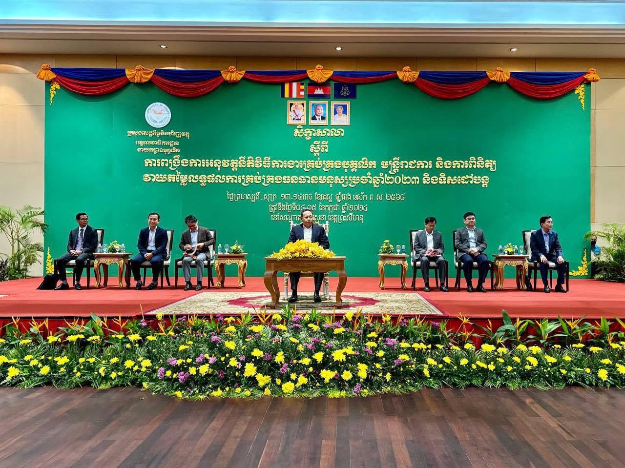 នាព្រឹកថ្ងៃចន្ទ ៥កើត ខែអស្សុជ ឆ្នាំរោង ឆស័ក ព.ស.២៥៦៨ ត្រូវនឹង ថ្ងៃទី៧ ខែតុលា ឆ្នាំ២០២៤ លោកប្រធានមន្ទីរសេដ្ឋកិច្ច និងហិរញ្ញវត្ថុខេត្តអមដោយមន្រ្តីជំនាញ១រូបបានចូលរួមសិក្ខាសាលាផ្សព្វផ្សាយ ស្តីពីលិខិតបទដ្ឋានគតិយុត្តពាក់ព័ន្ធនឹងការគ្រប់គ្រងទ្រព្យសម្បត្តិរដ្ឋ និងចំណូលមិនមែនសារពើពន្ធ ក្រោមអធិបតីភាព ឯកឧត្តមបណ្ឌិត ឈន សុភាព រដ្ឋលេខាធិការ ក្រសួងសេដ្ឋកិច្ចនិងហិរញ្ញវត្ថុ តំណាងដ៏ខ្ពង់ខ្ពស់ ឯកឧត្តម អគ្គបណ្ឌិតសភាចារ្យ អូន ព័ន្ធមុនីរ័ត្ន ឧបនាយករដ្ឋមន្រ្តី រដ្ឋមន្រ្តីក្រសួងសេដ្ឋកិច្ច និងហិរញ្ញវត្ថុ។ សិក្ខាសាលានេះរៀបចំឡើងនៅសណ្ឋាគារឆ្នេរសុខា ខេត្តព្រះសីហនុ។