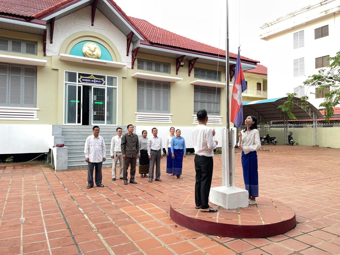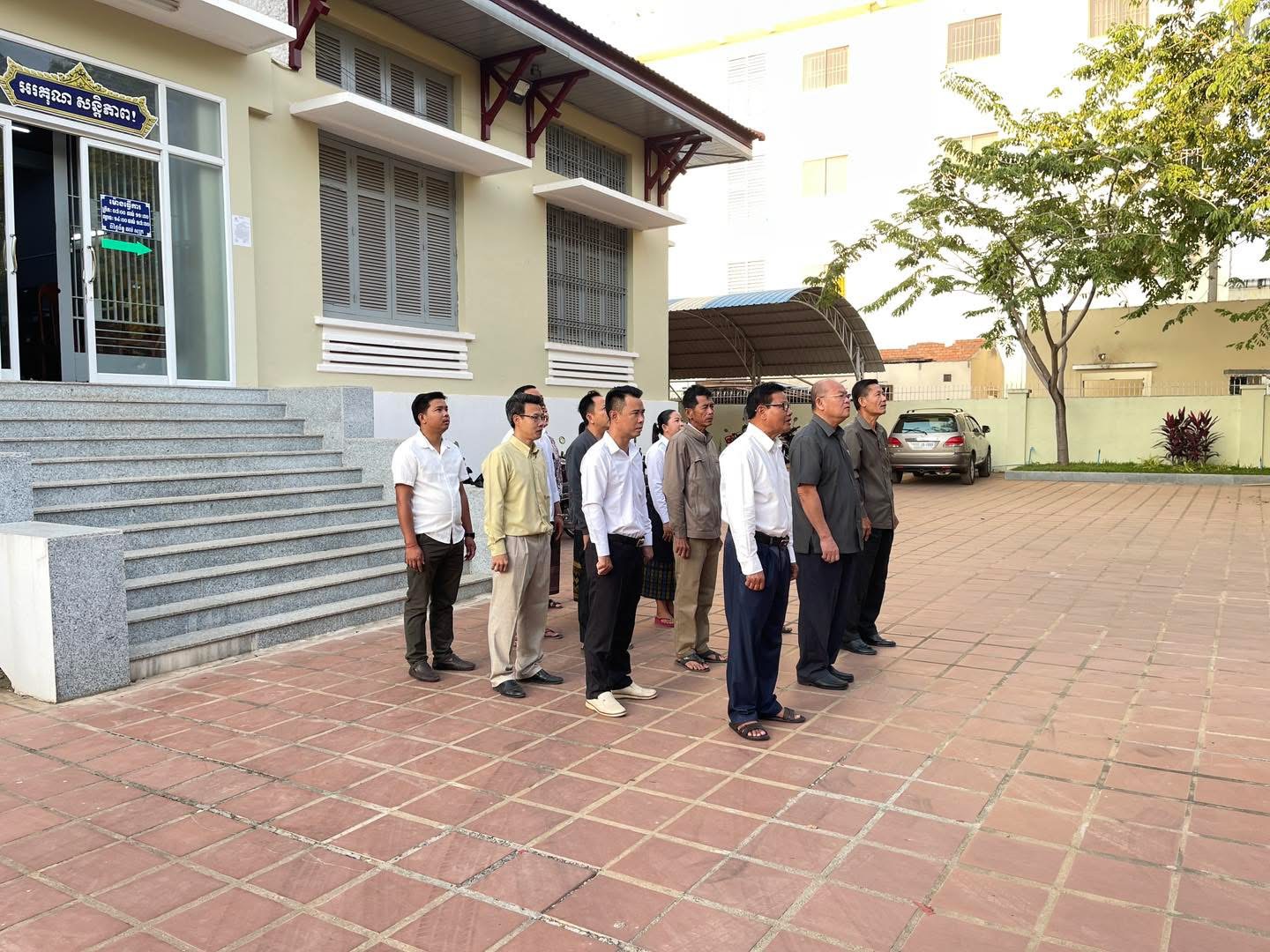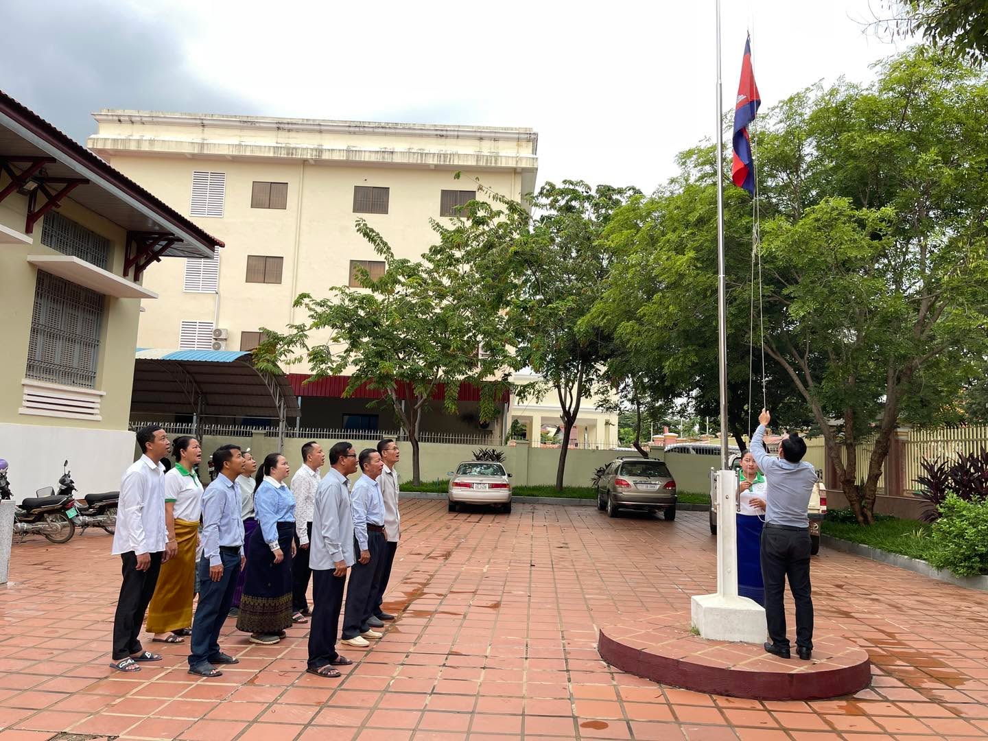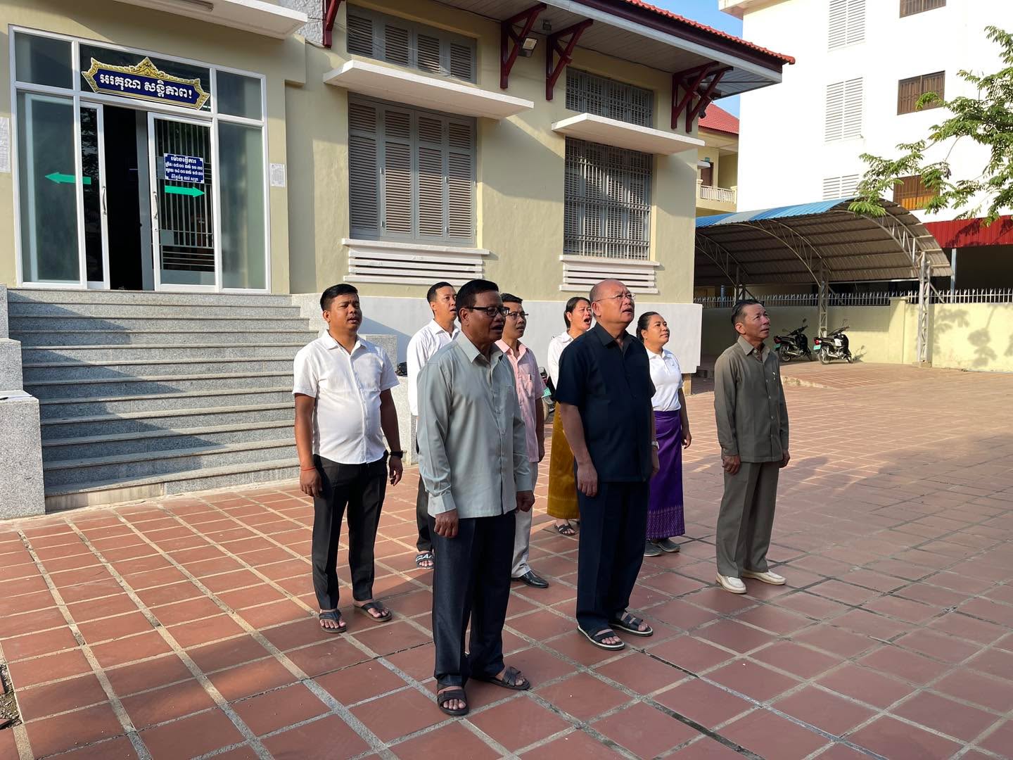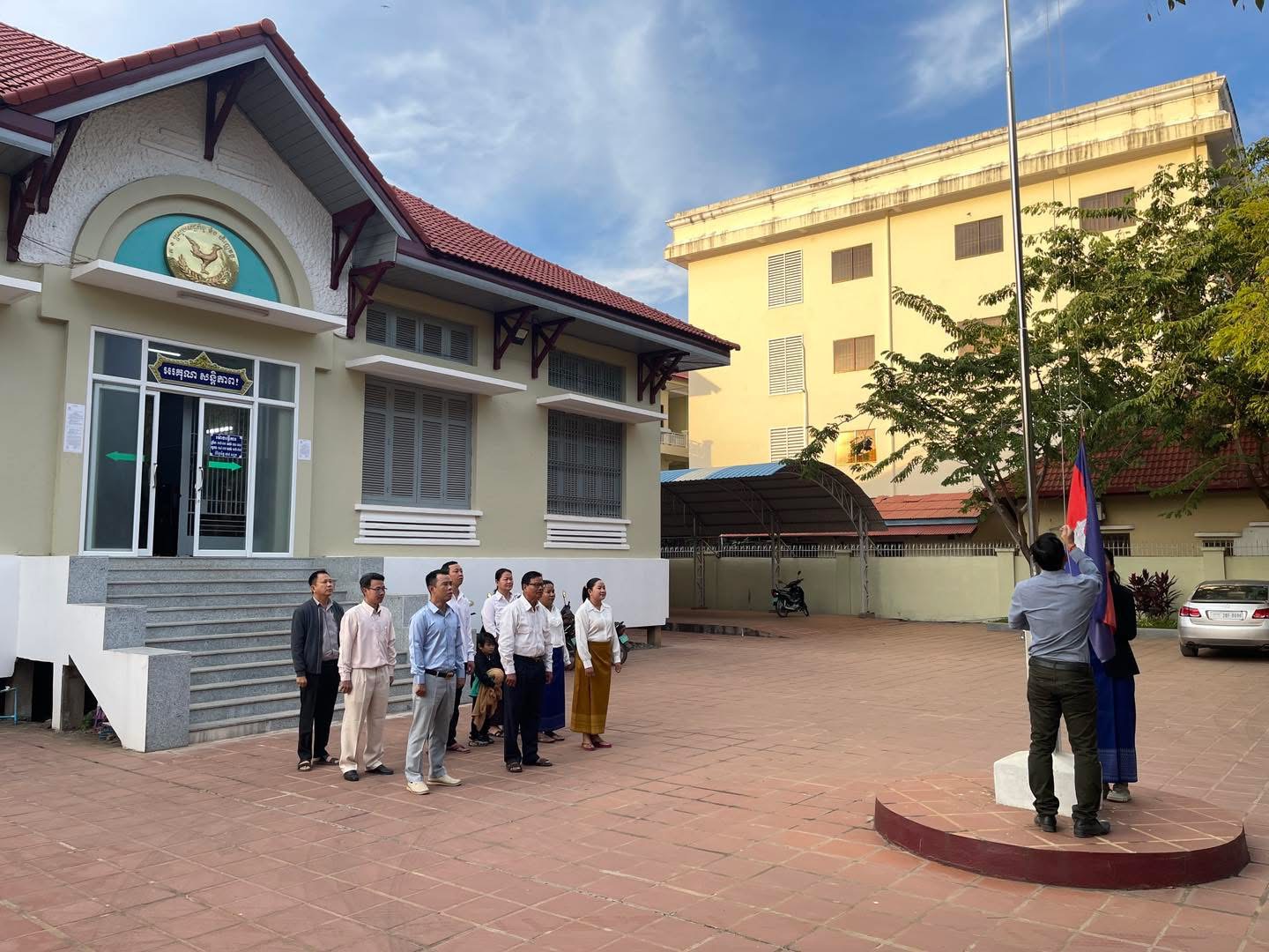 ព្រឹកថ្ងៃចន្ទ ថ្ងៃទី៩ ខែធ្នូ ឆ្នាំ២០២៤ វេលាម៉ោង ៧ព្រឹក ថ្នាក់ដឹកនាំរួមទាំងមន្រ្តីរាជការនៃមន្ទីរសេដ្ឋកិច្ច និងហិរញ្ញវត្ថុខេត្ត បានអនុវត្តគោរពទង់ជាតិនៃព្រះរាជាណាចក្រកម្ពុជា។
