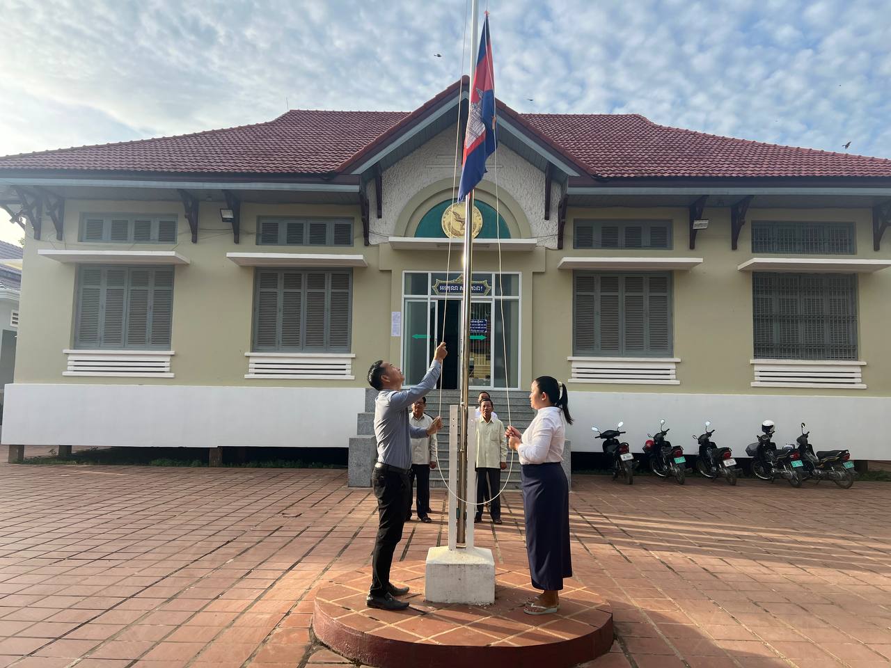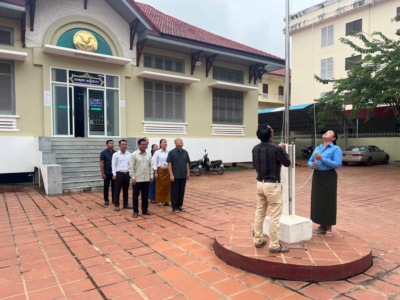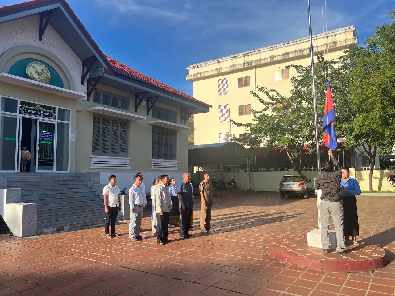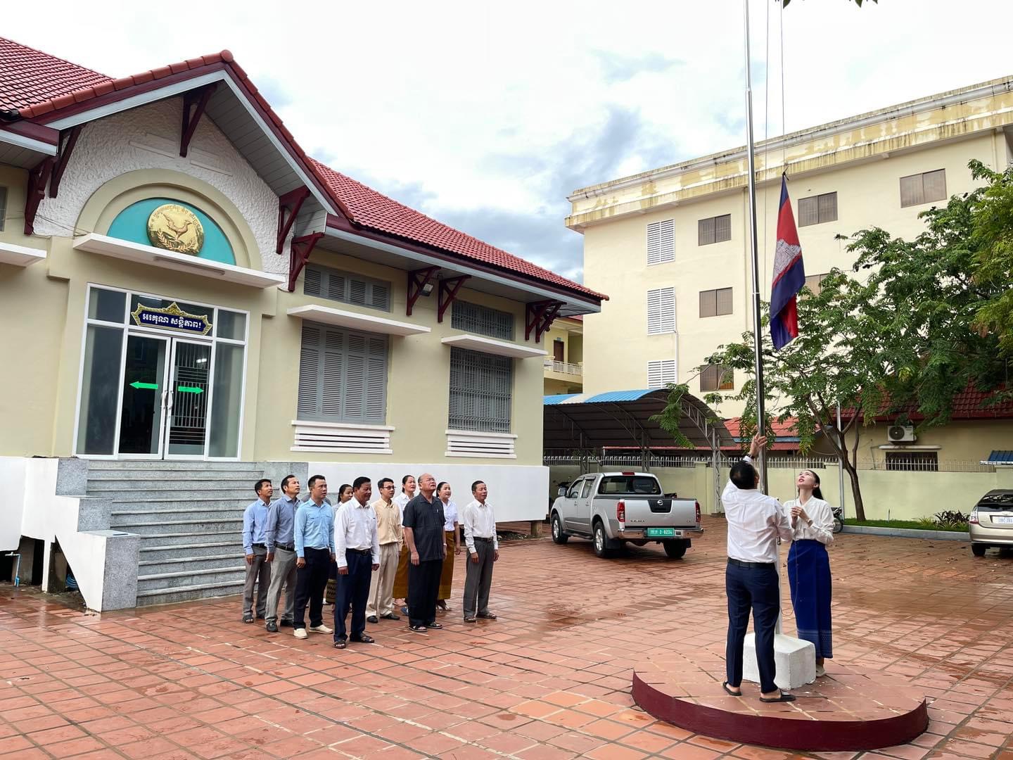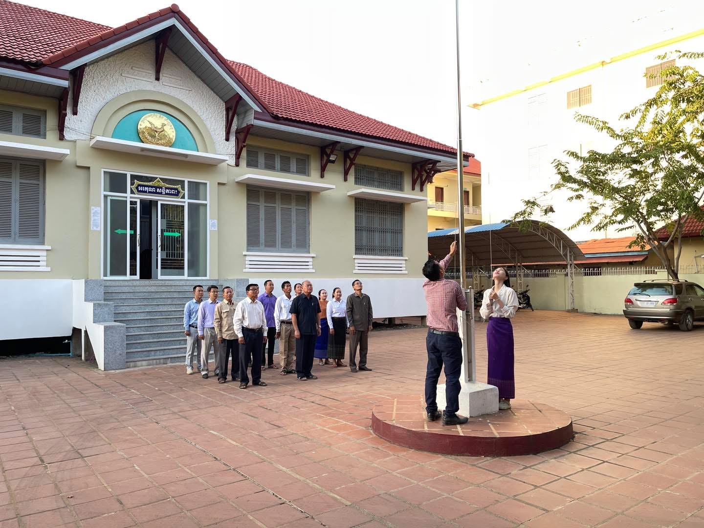 ព្រឹកថ្ងៃចន្ទ ថ្ងៃទី៩ ខែធ្នូ ឆ្នាំ២០២៤ វេលាម៉ោង ៧ព្រឹក ថ្នាក់ដឹកនាំរួមទាំងមន្រ្តីរាជការនៃមន្ទីរសេដ្ឋកិច្ច និងហិរញ្ញវត្ថុខេត្ត បានអនុវត្តគោរពទង់ជាតិនៃព្រះរាជាណាចក្រកម្ពុជា។