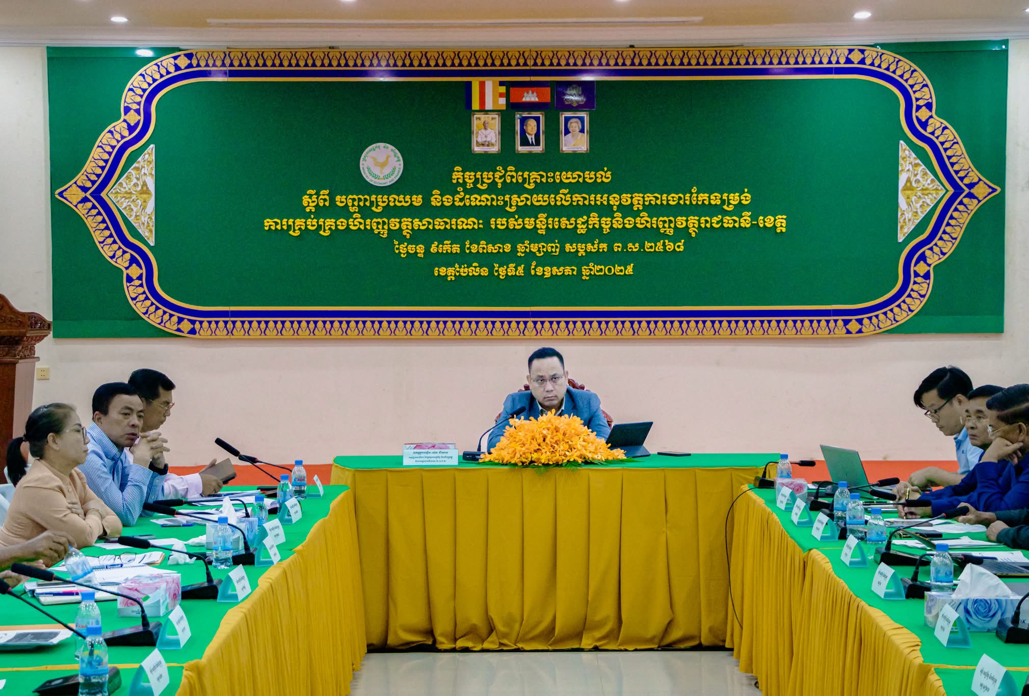 នារសៀលថ្ងៃចន្ទ ៩កើត ខែពិសាខ ឆ្នាំម្សាញ់ សប្តស័ក ព.ស.២៥៦៨ ត្រូវនឹងថ្ងៃទី៥ ខែឧសភា ឆ្នាំ២០២៥, នៅមន្ទីរសេដ្ឋកិច្ចនិងហិរញ្ញវត្ថុខេត្តប៉ៃលិន,លោកប្រធានមន្ទីរសេដ្ឋកិច្ច និងហិរញ្ញវត្ថុខេត្ត អមដោយមន្រ្តីជំនាញមួយរូបបានចូលរួមកិច្ចប្រជុំពិគ្រោះយោបល់ ស្ដីពីបញ្ហាប្រឈម និងដំណោះស្រាយលើការអនុវត្តការងារកែទម្រង់ការគ្រប់គ្រងហិរញ្ញវត្ថុសាធារណៈ របស់មន្ទីរសេដ្ឋកិច្ចនិងហិរញ្ញវត្ថុរាជធានី-ខេត្ត ក្រោមអធិបតីភាព ឯកឧត្តមបណ្ឌិត យ៉េត វីណែល អនុរដ្ឋលេខាធិការ ក្រសួងសេដ្ឋកិច្ចនិងហិរញ្ញវត្ថុ និងជាអគ្គលេខាធិការរង នៃអគ្គលេខាធិការដ្ឋានគណៈកម្មាធិការដឹកនាំការងារកែទម្រង់ការគ្រប់គ្រងហិរញ្ញវត្ថុសាធារណៈ (អ.គ.ហ.)។