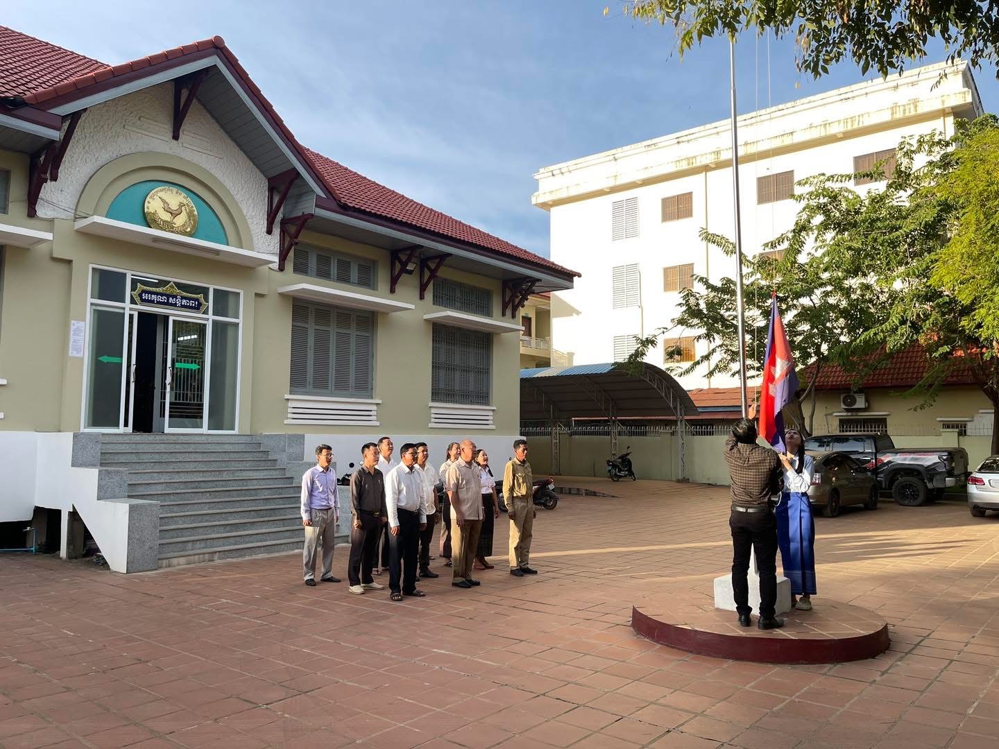 ព្រឹកថ្ងៃចន្ទ ថ្ងៃទី២៥ ខែវិច្ឆិកា ឆ្នាំ២០២៤ វេលាម៉ោង ៧ព្រឹក ថ្នាក់ដឹកនាំរួមទាំងមន្រ្តីរាជការនៃមន្ទីរសេដ្ឋកិច្ច និងហិរញ្ញវត្ថុខេត្ត បានអនុវត្តគោរពទង់ជាតិនៃព្រះរាជាណាចក្រកម្ពុជា។