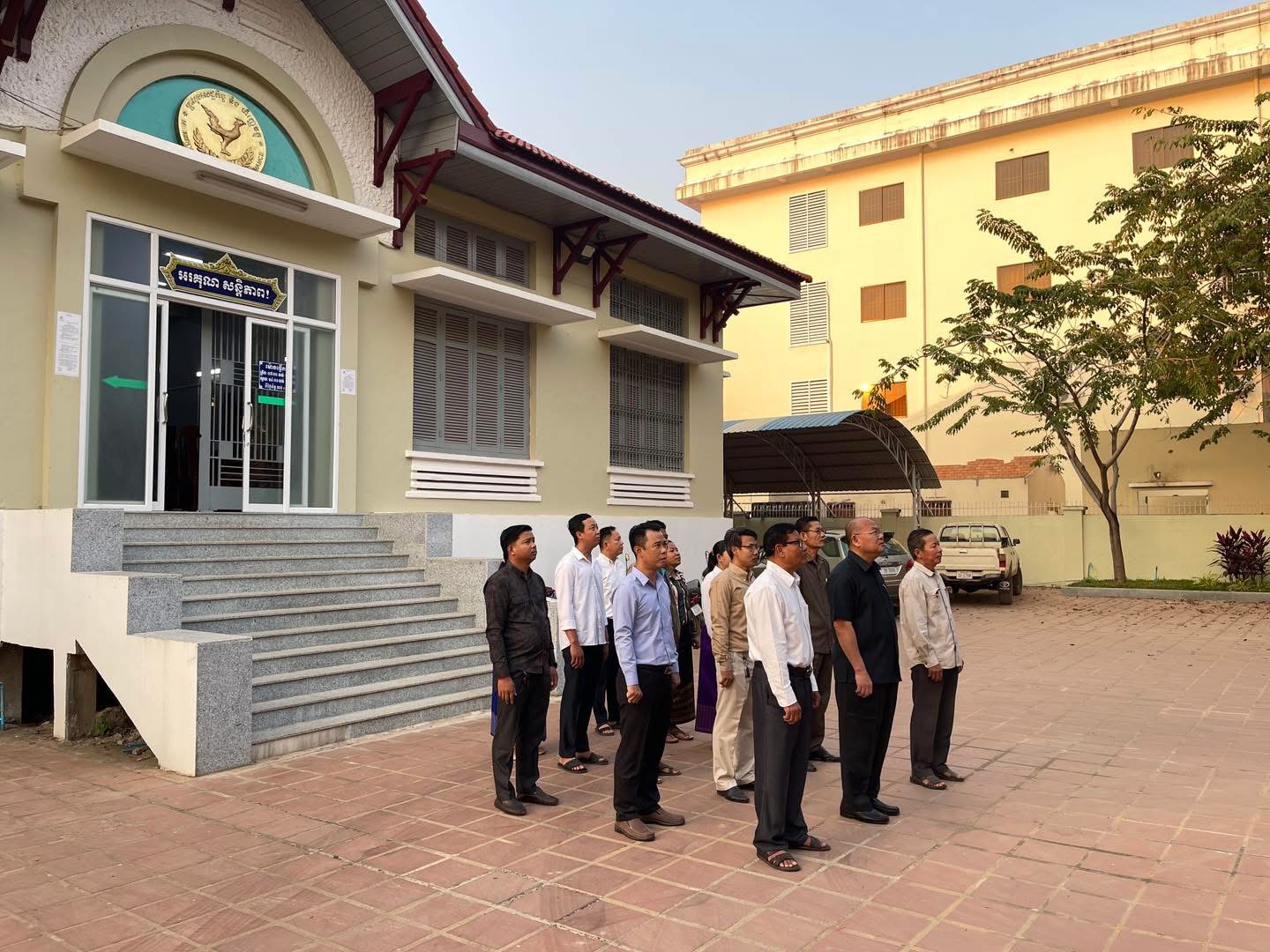 ព្រឹកថ្ងៃទី១០ ខែកុម្ភៈ ឆ្នាំ២០២៥ វេលាម៉ោង ៧ព្រឹក ថ្នាក់ដឹកនាំ និង មន្រ្តីរាជការនៃមន្ទីរសេដ្ឋកិច្ច និងហិរញ្ញវត្ថុខេត្ត បានអនុវត្តគោរពទង់ជាតិនៃព្រះរាជាណាចក្រកម្ពុជា។