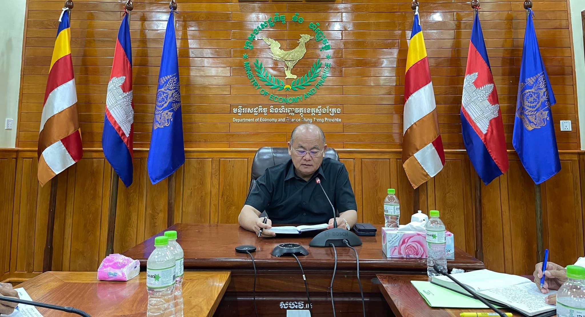រសៀលថ្ងៃអង្គារ ១ រោច ខែស្រាពណ៍ ឆ្នាំរោង ឆស័ក ព.ស. ២៥៦៨ ត្រូវនឹងថ្ងៃទី២០ ខែសីហា ឆ្នាំ២០២៤ លោកប្រធានមន្ទីរសេដ្ឋកិច្ច និងហិរញ្ញវត្ថុខេត្តអមដោយមន្រ្តីជំនាញ១រូបបានចូលរួមកិច្ចប្រជុំពិភាក្សាគម្រោងថវិកាឆ្នាំ២០២៥ របស់រដ្ឋបាលខេត្តស្ទឹងត្រែង ក្រោមការដឹកនាំរបស់ឯកឧត្តមបណ្ឌិត ជូ គឹមឡេង រដ្ឋលេខាធិការ ក្រសួងសេដ្ឋកិច្ច និងហិរញ្ញវត្ថុ ។